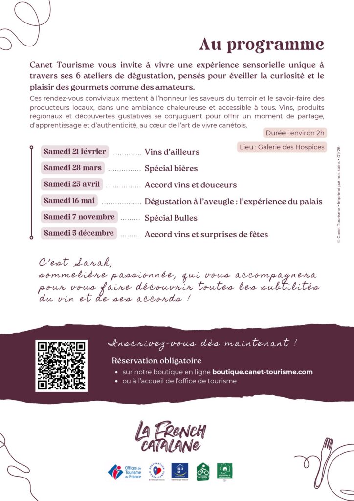 Attention, les places sont limitées (de 12 à 20 personnes selon l’atelier). La réservation est donc obligatoire et se fait directement auprès de Canet Tourisme. Ne tardez plus, les saveurs vous appellent !