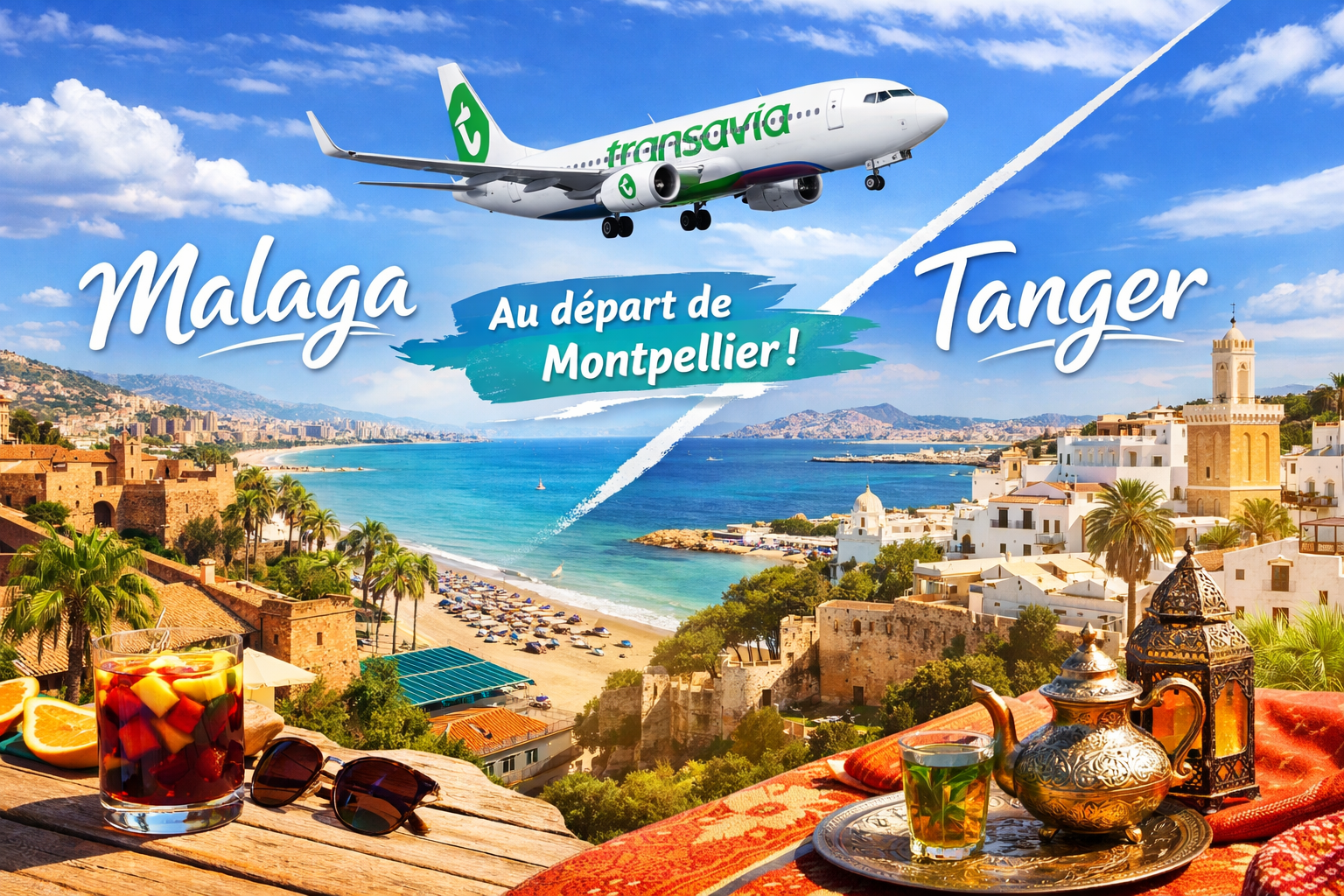 Transavia démarre 2026 sur les chapeaux de roues. La compagnie low-cost du groupe Air France-KLM annonce l’ouverture de deux nouvelles lignes estivales au départ de l’aéroport de Montpellier-Méditerranée : Malaga en Espagne et Tanger au Maroc. Soleil, culture et évasion sont désormais à portée d’embarquement.