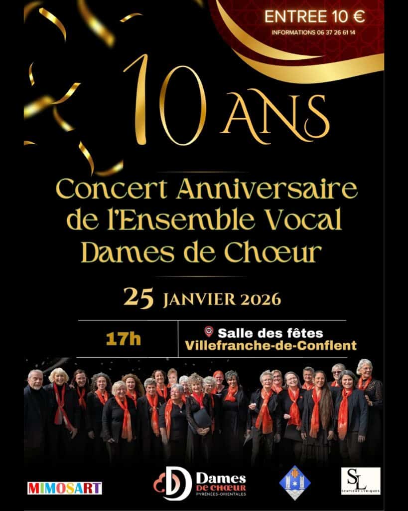 Nous, Dames de Choeur des Pyrénées Orientales , fêtons notre 10ème Anniversaire Dimanche 25 janvier 2026 à la Salle des Fêtes de Villefranche de Conflent.