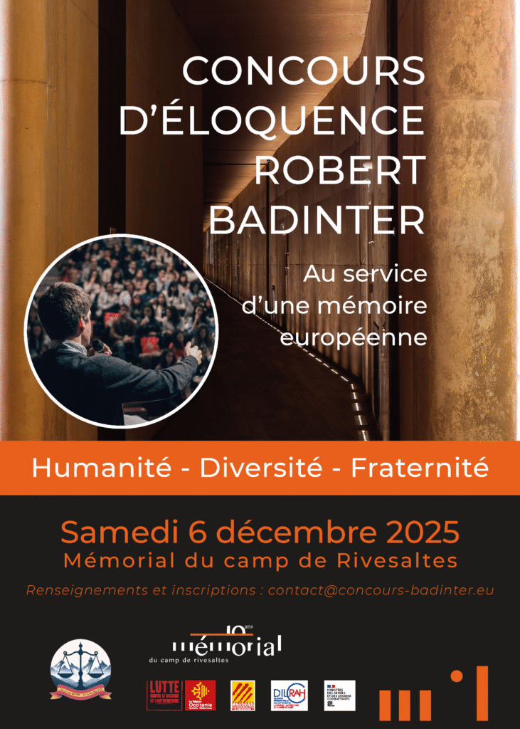 Le Mémorial du camp de Rivesaltes s’apprête à accueillir un événement inédit et porteur de sens : le Concours d’éloquence Robert Badinter. En partenariat avec l’Union des Jeunes Avocats (UJA) des Pyrénées-Orientales, cette journée du samedi 6 décembre à 14h00 promet d’être un moment fort pour la mémoire européenne.