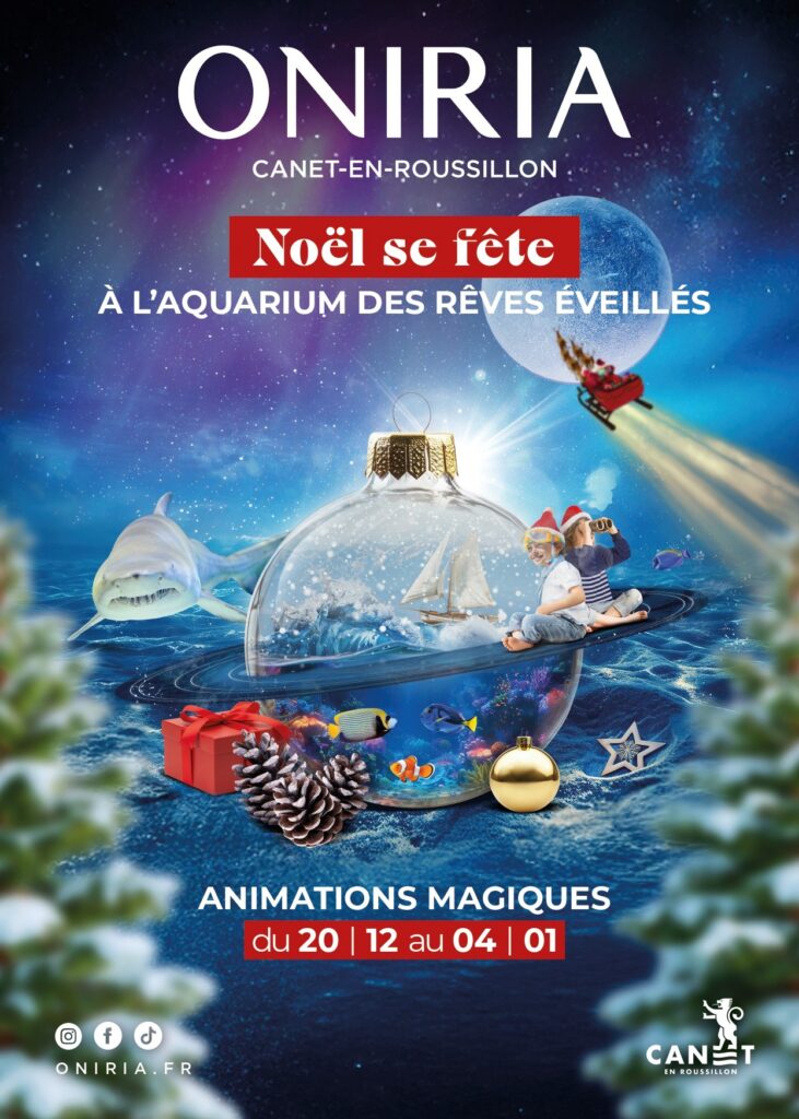 Que ce soit pour déposer votre lettre au Père Noël, vous faire maquiller ou tout simplement profiter de la magie sous-marine, l’Aquarium Oniria s’impose comme le lieu incontournable des fêtes dans les P-O. C’est la tradition à ne pas manquer !